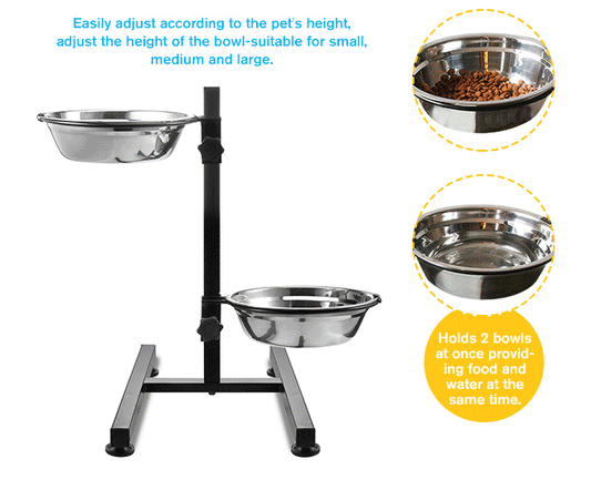 Adjustable Stand with Two Removable Stainless Steel Bowls